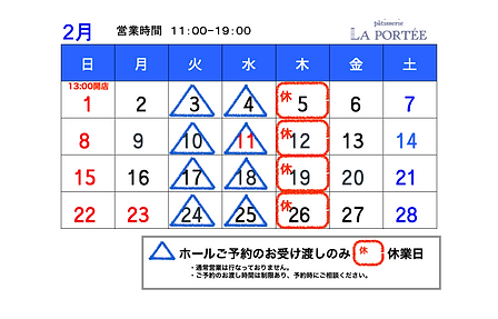 2,3月の営業カレンダー
